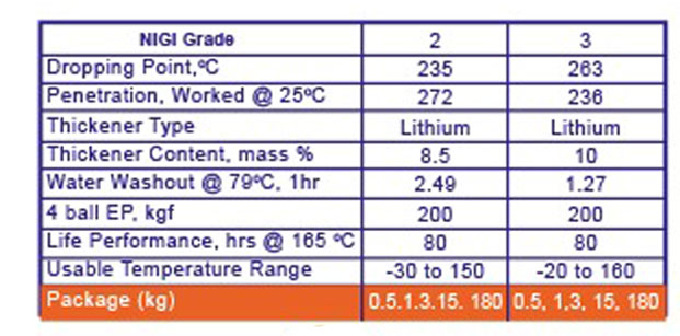 GULF: All purpose automotive Grease made with high quality base oils. Lithium soaps with antioxidants resistance properties, high oxidation stability and good structure stability, suitable for both anti friction and plain bearings linkages suspensions and other grease application points of vehicles operating under normal service conditions.